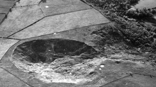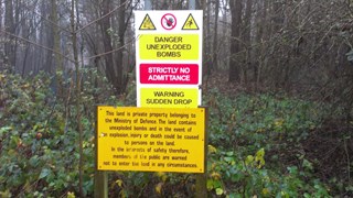 Fauld Crater is a huge scar in the landscape, caused by Britain's largest man made explosion. On 27 November 1944, 4,000 tons of high explosive bombs stored in former Gypsum mines exploded leaving 70 people dead (18 never to be found) and a crater 400 feet deep, and around half a mile long. A simple plaque tells its story but Richard will give much more detail on the day.