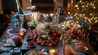 Roast Turkey Apple and cranberry stuffing, pigs in blankets, roast potatoes, butternut squash purée, roasted carrots and parsnips, winter greens and a nut crumble. Plus extra gravy for pouring N