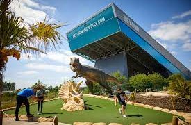 You've passed it a thousand times and today we get to go and try Crazy Golf at Dino falls Trafford Park. Find your way through prehistoric caves, winding fossil paths and palm trees, and hold steady on your putt under the watchful eyes of our gigantic resident dinosaurs including Tyrannosaurus Rex, Allosaurus, Baby Triceratops, Pterasuria, Velociraptors Raptors, Iguanodon, Diplodocus, Triceratops.