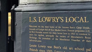 At Sam's Chop House in Manchester, you can expect a historic and cosy pub atmosphere, traditional, hearty British food and a well-regarded selection of drinks. The restaurant is an iconic, long-standing Manchester institution, known for its classic cuisine and the bronze statue of its famous regular, artist L.S. Lowry, propped up at the bar.